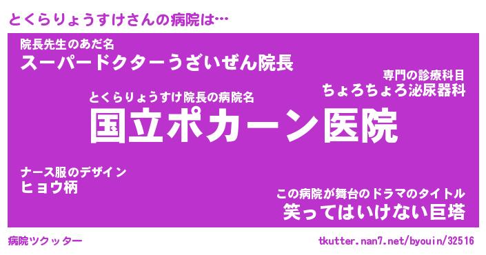 | 男性向けラノベタイトル風あだ名 | 『とくらりょうすけの憂鬱』 |