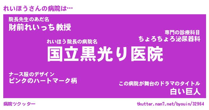| 男性向けラノベタイトル風あだ名 | 『れいほうの憂鬱』 |