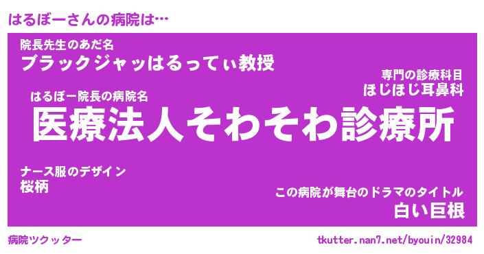 | 意味不明あだ名 | 『ペロリンはるぼー』『永久保存はるぼー』 |