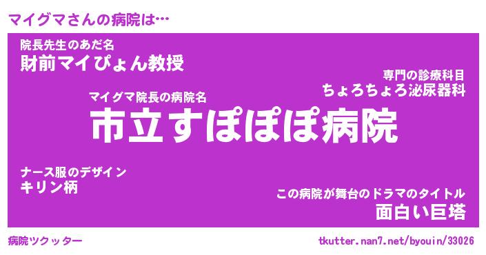 | 意味不明あだ名 | 『ペロリンマイグマ』『永久保存マイグマ』 |