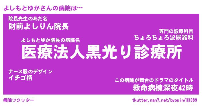 | ヒーロー風カッコイイあだ名 | 『スーパーヨシモトユカ』『幻影騎士ヨシ』 |