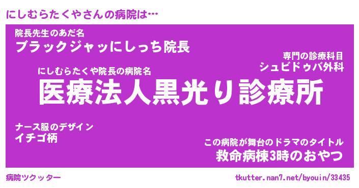 | 肩書あだ名 | 『にしむらたくや社長』 |