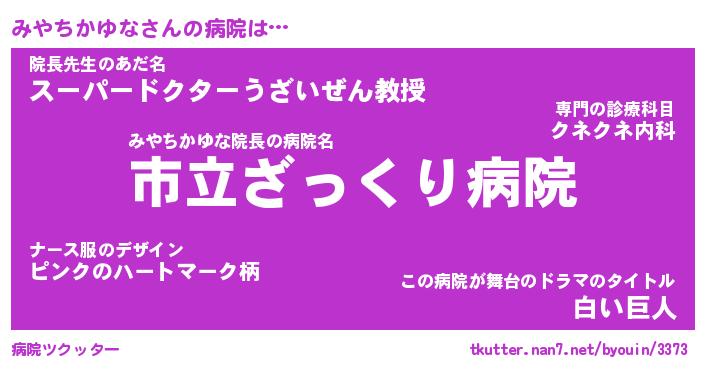 | ヒーロー風カッコイイあだ名 | 『スーパーミヤチカユナ』『天弓騎士ミヤ』 |