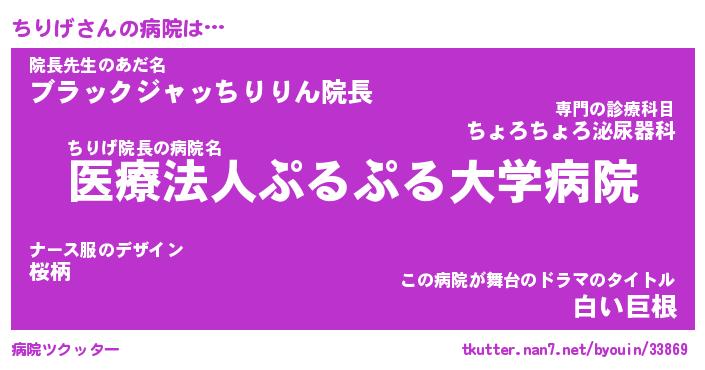 | ヘコむあだ名 | 『ちりにゅー』『豆乳』『ちりぷりん』 |