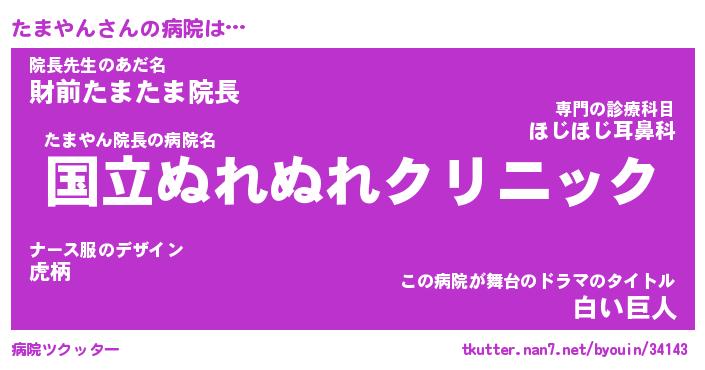 | 意味不明あだ名 | 『ペロリンたまやん』『永久保存たまやん』 |
