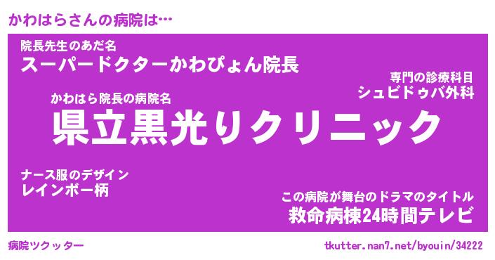 | 意味不明あだ名 | 『ペロリンかわはら』『永久保存かわはら』 |