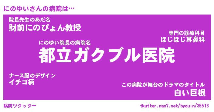 | ヘコむあだ名 | 『にのにゅー』『つくし』『にの太郎』 |