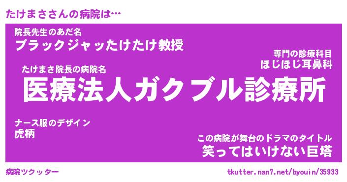 | ポケモン風あだ名 | 『タケチュウ』『タケマダネ』 |
