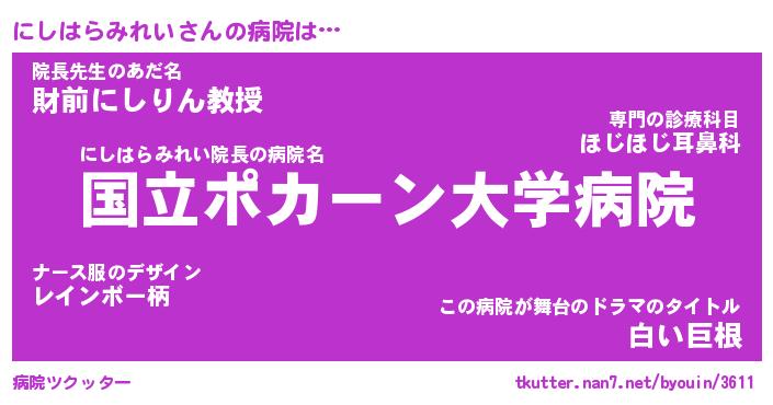 | ヘコむあだ名 | 『にしにゅー』『酢こんぶ』 |