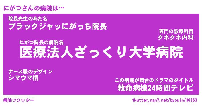 ポケモン風あだ名 | 『ニガチュウ』『ニガツダネ』 |