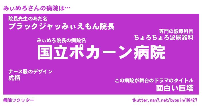 | 男性向けラノベタイトル風あだ名 | 『みぃめろの憂鬱』 |