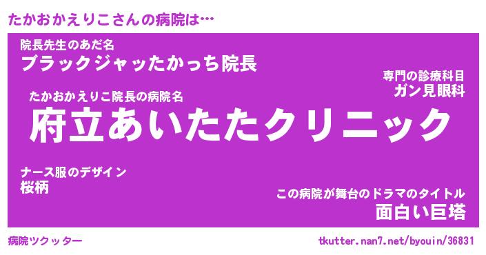 | 男性向けラノベタイトル風あだ名 | 『たかおかえりこの憂鬱』 |