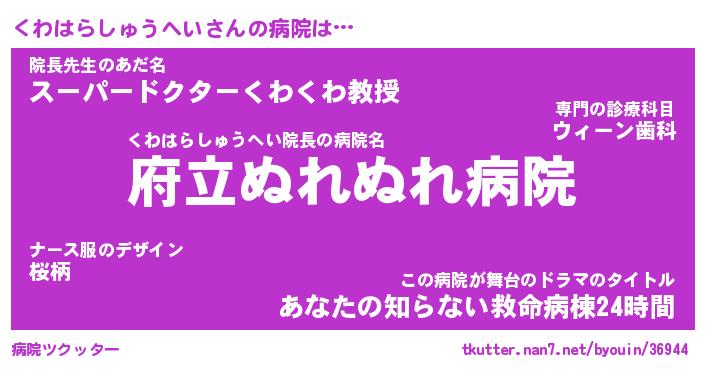 | 胡散臭い通販商品みたいなあだ名 | 『モテモテ間違いなし水晶球…その名も「くわはらしゅうへい」』 |