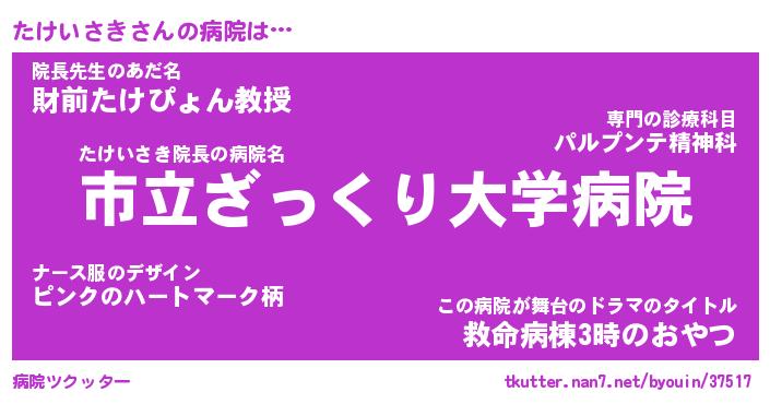 | ファンタジー風あだ名 | 『タケフェル』『エターナルタケイサキー』 |