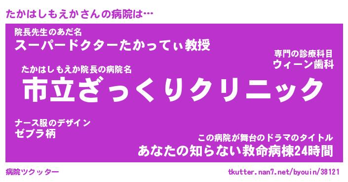 | 肩書あだ名 | 『たかはしもえか御曹司』 |