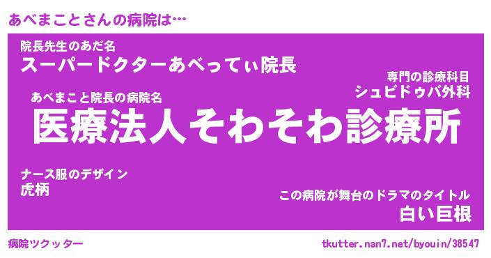 | 胡散臭い通販商品みたいなあだ名 | 『億万長者になれるブレスレット…その名も「あべまこと」』 |