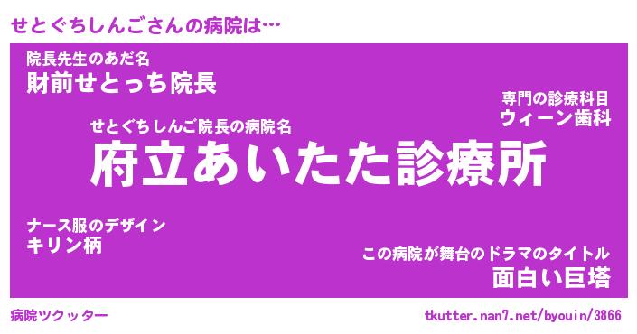 | 伝説のあだ名 | 『不死鳥のスナイパーせとぐちしんご』 |