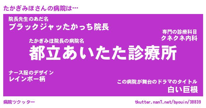 | ポケモン風あだ名 | 『タカチュウ』『タカギダネ』 |