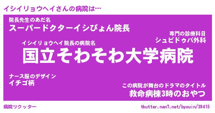 | ヒーロー風カッコイイあだ名 | 『スーパーイシイリョウヘイ』 |