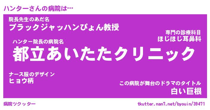 | 意味不明あだ名 | 『ペロリンハンター』『永久保存ハンター』 |