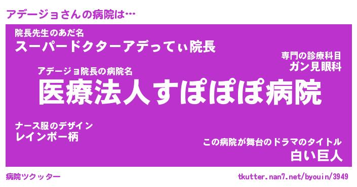 | ヒーロー風カッコイイあだ名 | 『スーパーアデージョ』『暗黒騎士アデ』 |