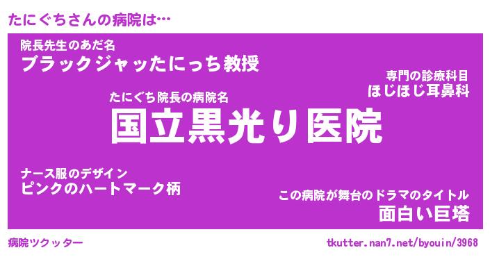 | ヒーロー風カッコイイあだ名 | 『スーパータニグチ』『幻影騎士タニ』 |