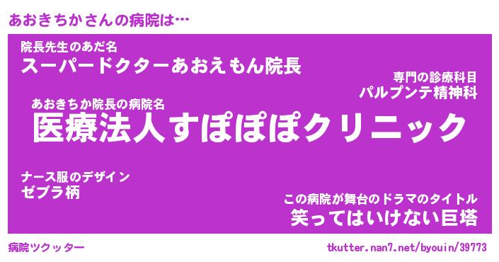 | ファンタジー風あだ名 | 『アオフェル』『エターナルアオキチカー』 |