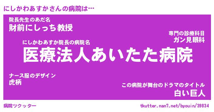 | ヘコむあだ名 | 『にしっふぃ~』『つくし』『にしを』 |