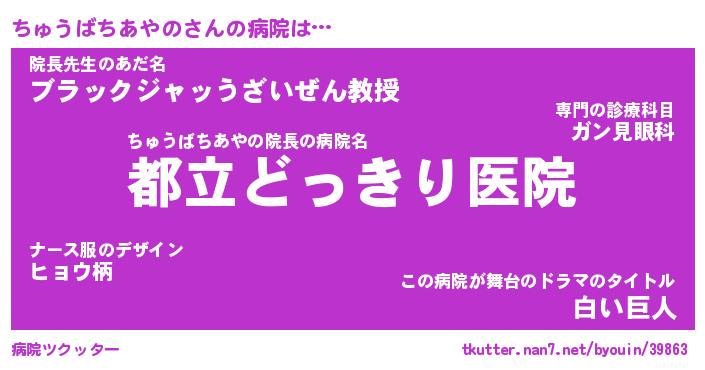 | ヒーロー風カッコイイあだ名 | 『スーパーチュウバチアヤノ』 |