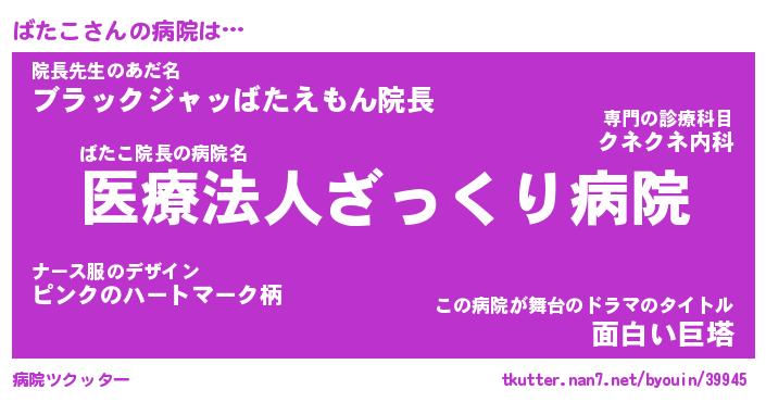 | ヒーロー風カッコイイあだ名 | 『スーパーバタコ』『ウルトラばたこマン』 |