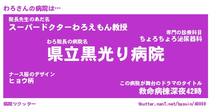 呪いの病院の様だw …「あさぎ」 | 3月30日 10:32 |