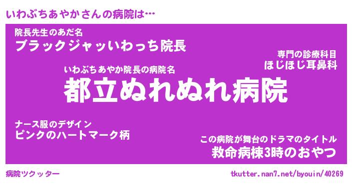 | 恥ずかしいあだ名 | 『プリティーいわぶちあやか』『いわちん』 |