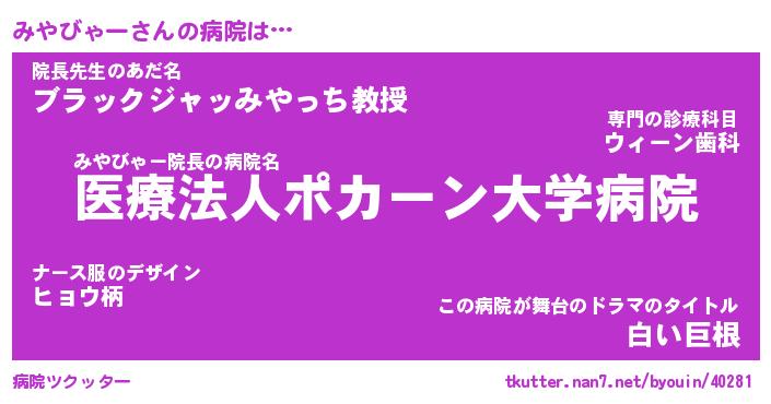 | ポケモン風あだ名 | 『ミヤチュウ』『ミヤビダネ』 |