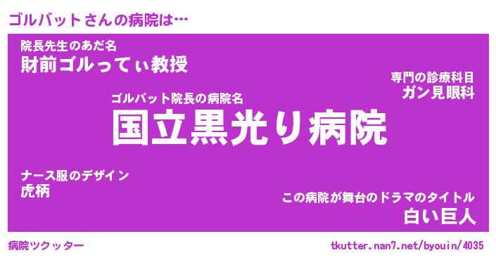 | 男性向けラノベタイトル風あだ名 | 『ゴルバットの憂鬱』 |