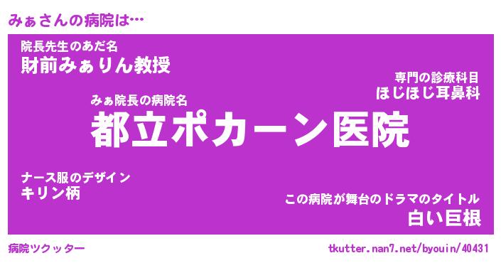 | ヘコむあだ名 | 『みぁにゅー』『レバニラ』『みぁお』 |