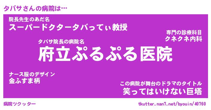 | ポケモン風あだ名 | 『タバチュウ』『タバサダネ』 |