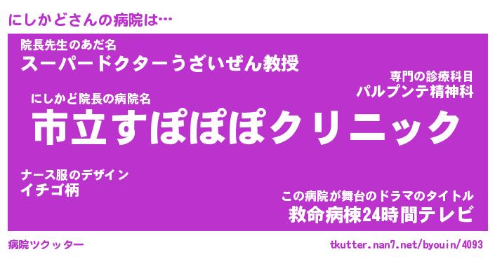 | ポケモン風あだ名 | 『ニシチュウ』『ニシカダネ』 |