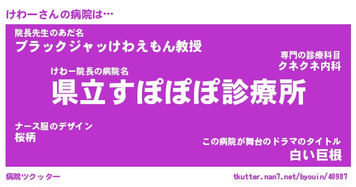 | ヒーロー風カッコイイあだ名 | 『スーパーケワー』『ウルトラけわーマン』 |