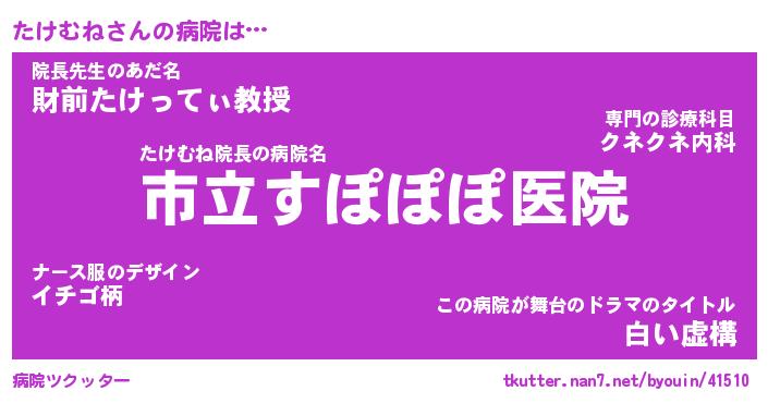 | 男性向けラノベタイトル風あだ名 | 『たけむねの憂鬱』 |