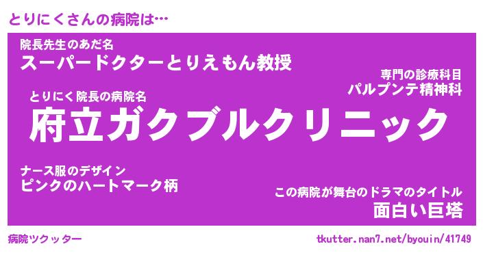 | ヘコむあだ名 | 『とりにゅー』『つくし』『とり太郎』 |