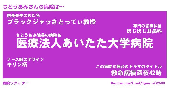 | 肩書あだ名 | 『さとうあみ御曹司』『さとうあみ大統領』 |
