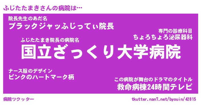 | 伝説のあだ名 | 『伝説のスナイパーふじたたまき』 |