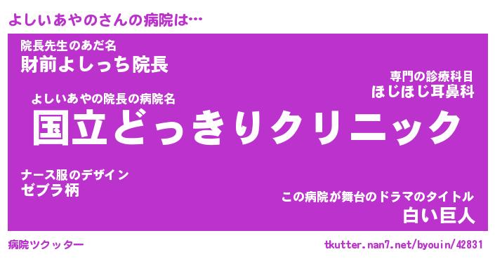 | 伝説のあだ名 | 『伝説のスナイパーよしいあやの』 |