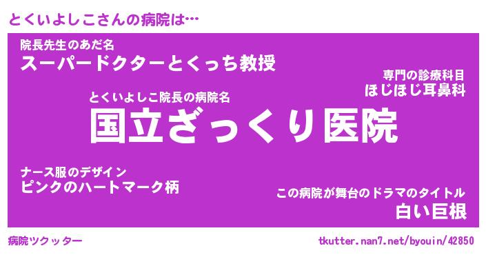 | 伝説のあだ名 | 『伝説のスナイパーとくいよしこ』 |