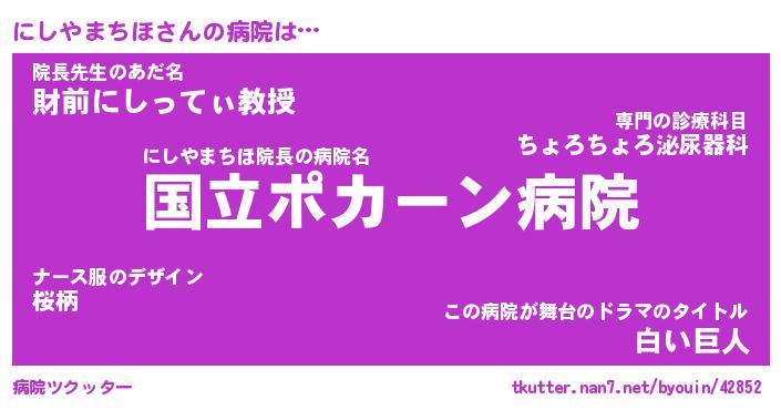 | ポケモン風あだ名 | 『ニシチュウ』『ニシヤダネ』 |