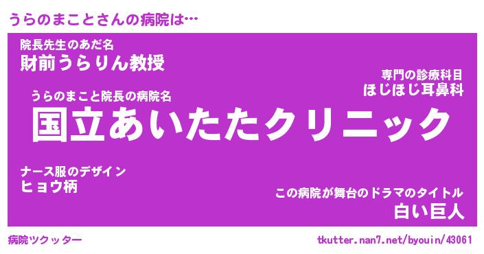 | 肩書あだ名 | 『うらのまこと御曹司』 |