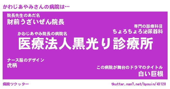 | ヒーロー風カッコイイあだ名 | 『スーパーカワジアヤミ』『暗黒騎士カワ』 |