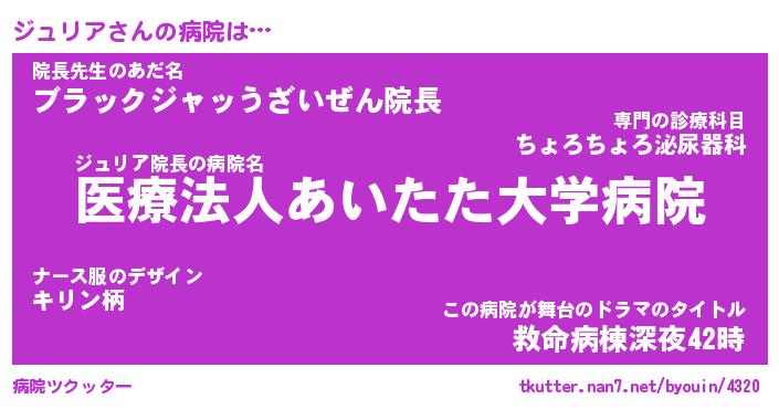 | 意味不明あだ名 | 『ペロリンジュリア』『永久保存ジュリア』 |