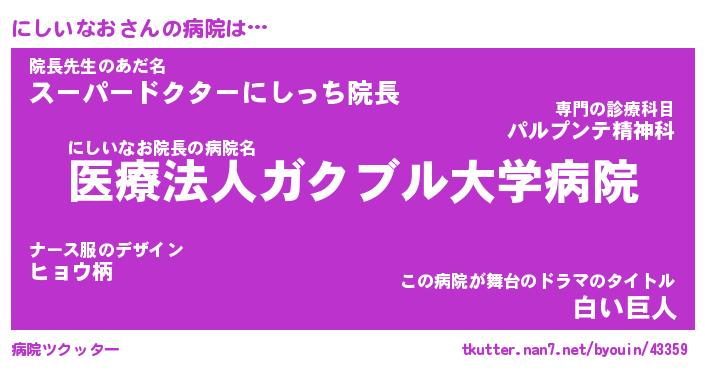 | ヘコむあだ名 | 『にしにゅー』『つくし』『にしを』 |