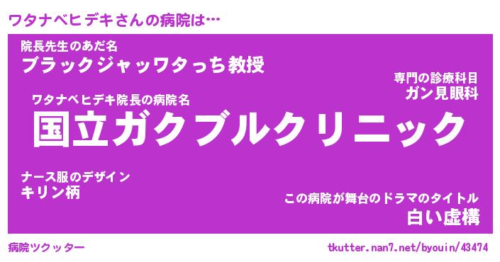 | ポケモン風あだ名 | 『ワタチュウ』『ワタナダネ』 |